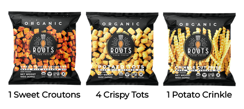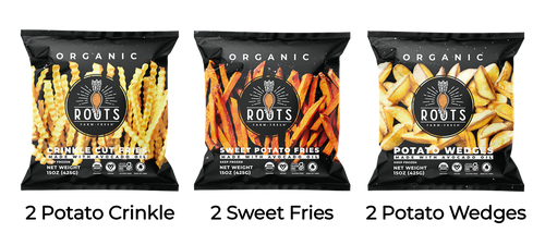All of the Roots' products use Upcycled Potatoes, which means they were too ugly for a grocery store, but make for awesome fries if made by the right hands. Organic. Seed Oil Free. Allergen Free. Upcycled Goodness.